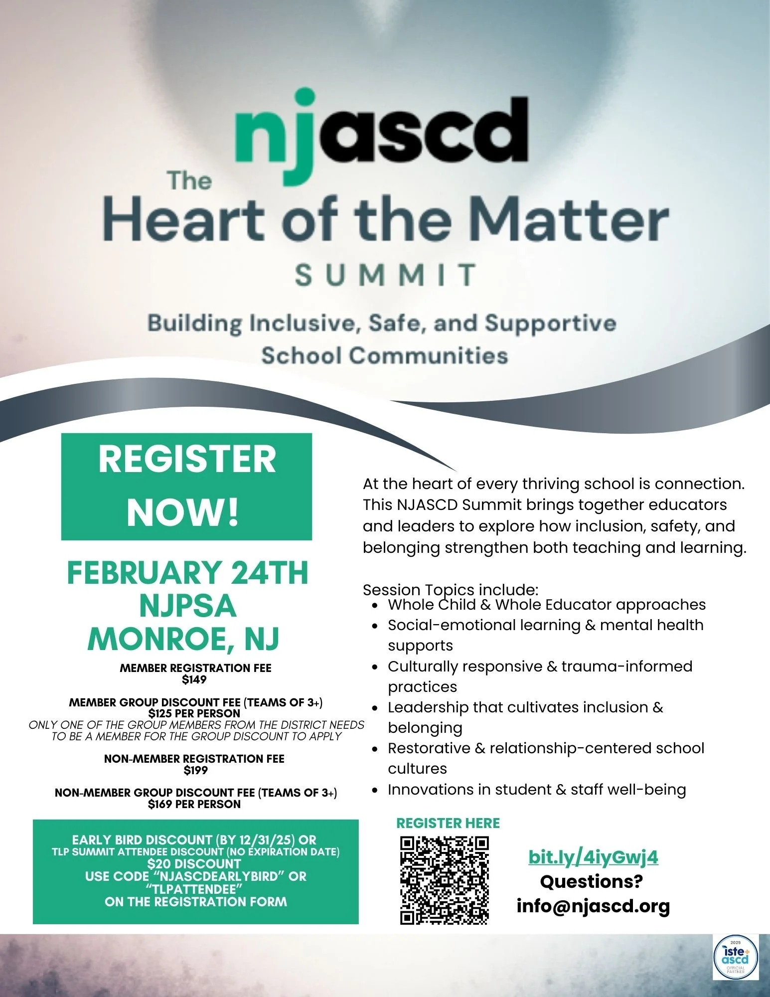 The New Jersey Affiliate of the Association for Supervision and Curriculum Development (NJASCD) is an award-winning organization with a focus on providing excellence in the learning community.